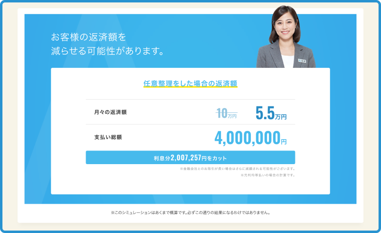 でも、実際に月々の支払いがいくらになるか知りたいけど、それを聞くためだけに弁護士に相談するのは勇気がいる・・・